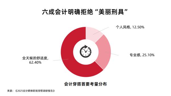 如果為全國數(shù)千萬企業(yè)會計的衣櫥進行一次大數(shù)據(jù)掃描,你會發(fā)現(xiàn)一組高度趨同的“行業(yè)參數(shù)”:當七成會計選擇用“安全色系”構建“隱身衣櫥”,六成將舒適度置于穿搭首位,一套基于精打細算的“職業(yè)皮膚”正成為行業(yè)共識。