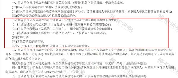 實務中,有些用人單位會以沒有簽訂勞動合同為由拒絕為職工繳納社保,豈不知,勞動關系的確定可不僅僅取決于一紙合同,只要有充分的證據證明個人與單位之間存在勞動關系,社保就必須得交!具體規(guī)定看下圖: